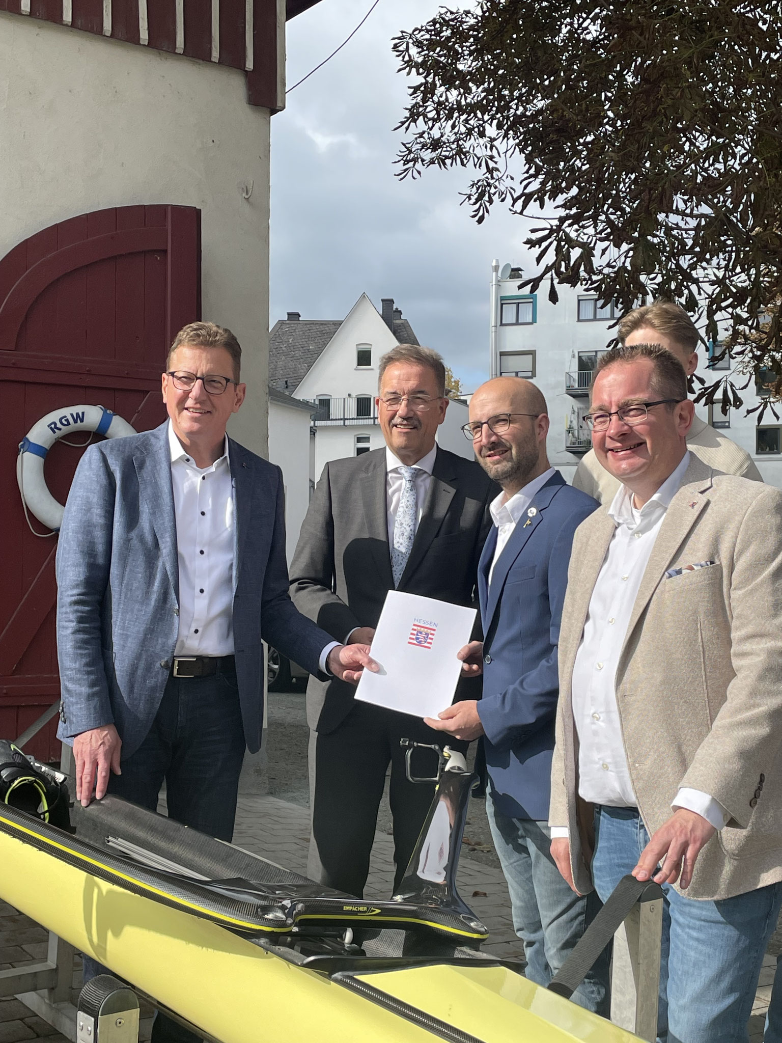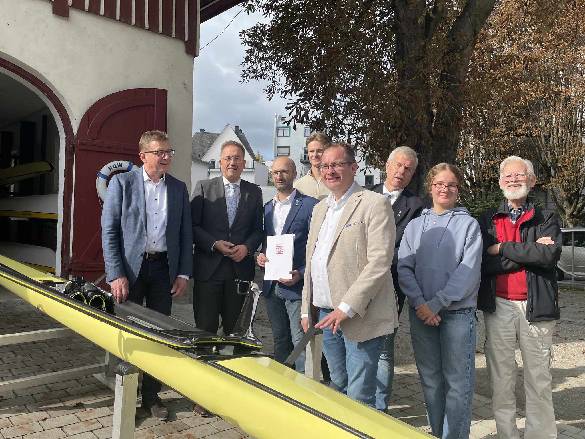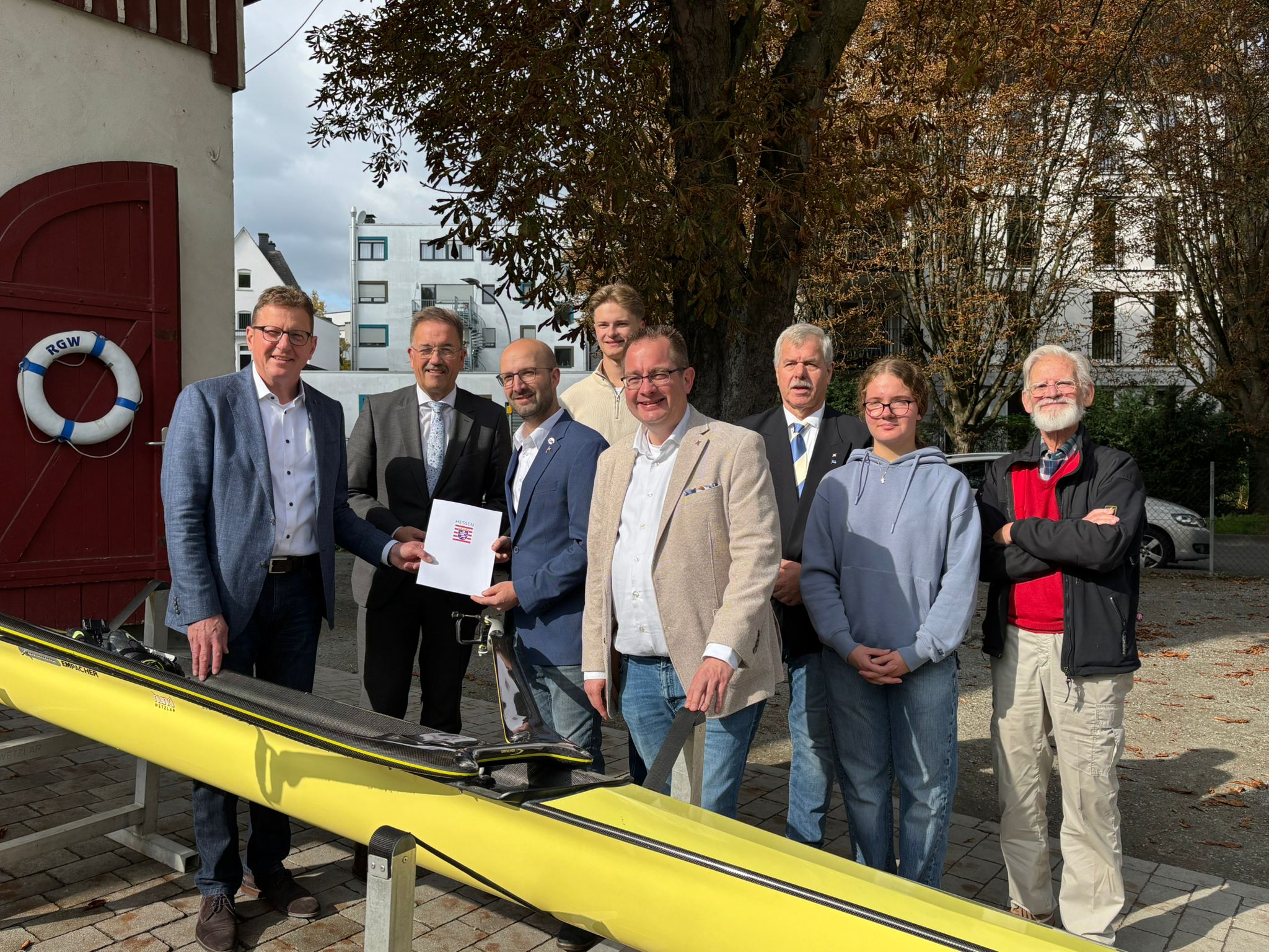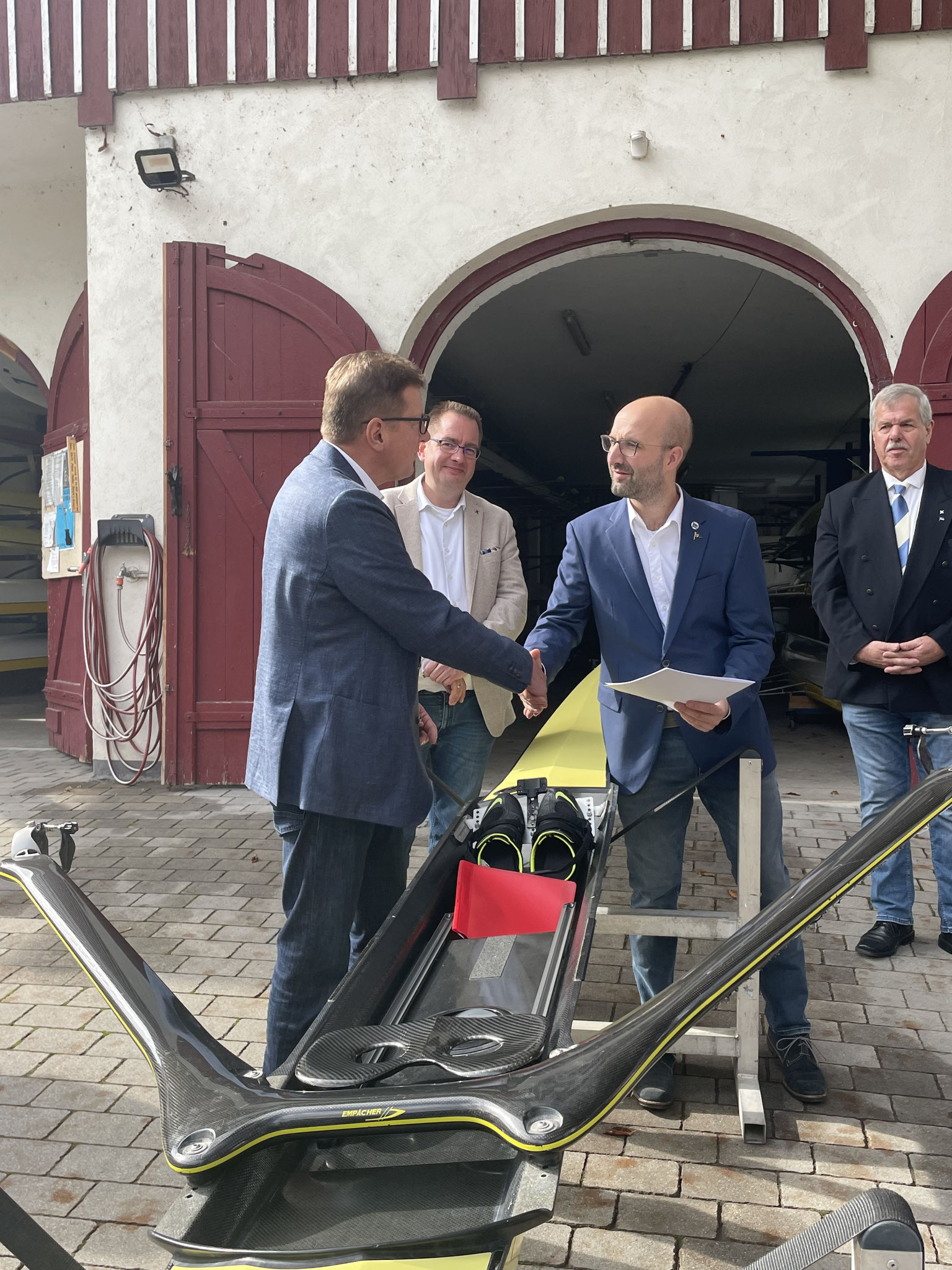 Am 10.10. kam daher der Staatssekretär Herr Stefan Sauer zu uns ans Bootshaus und überreichte Jan Pitzer den bewilligten Bescheid.